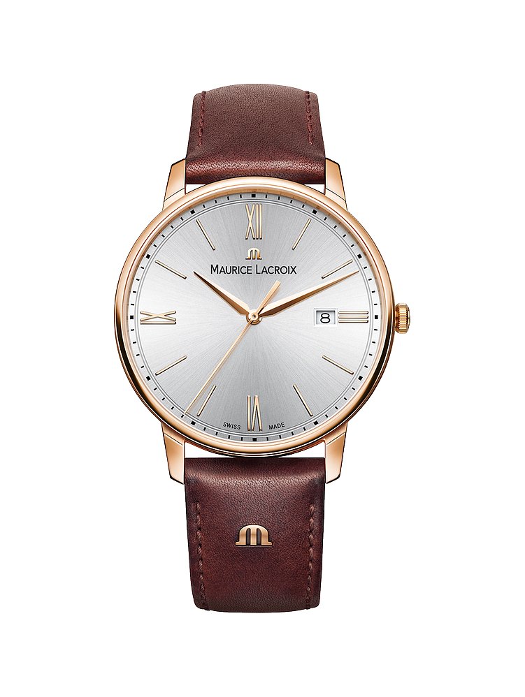 Die Eliros-Kollektion der Schweizer Uhrenmanufaktur MAURICE LACROIX besticht durch ein klassisch-elegantes Design mit hohem Wiedererkennungswert. Diese in stilvollen Farbtönen gehaltene Herrenuhr besitzt ein edles Armband aus Kalbsleder mit Maurice-Lacroix-Emblem sowie ein formschönes Edelstahl-Gehäuse mit kratzfestem Saphirglas. Unter diesem verbirgt sich ein ansprechendes Zifferblatt mit Datumsanzeige und römischen Ziffern auf den Positionen 3, 6, 9 und 12 Uhr. Setzen Sie ein Zeichen in Sachen Stilbewusstsein und kombinieren Sie diesen Zeitmesser mit einem legeren Business-Outfit.