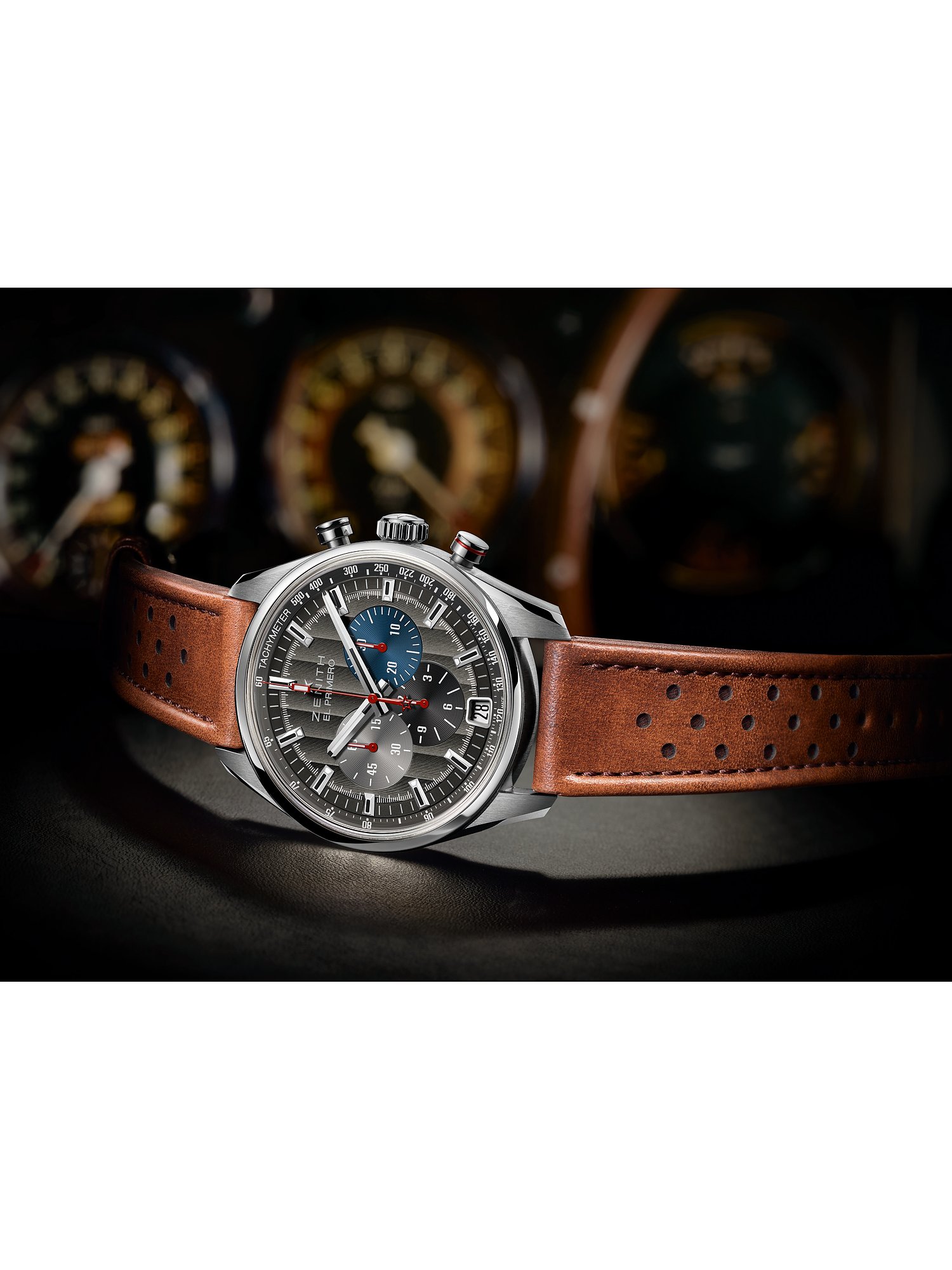 Why we love itSie lieben klassische Autos? Die präzise Technik, die die Wagen antreibt? Dann ist die El Primero Classic Cars von Zenith Ihre Uhr. Das Design verbindet Leistung und Eleganz und begeistert Motorsportfans auf ganzer Linie. Das Ziffernblatt erinnert an die Armaturen alter Sportwagen, das durchbrochene Armband aus Alligatorleder an die Handschuhe, mit denen einst die Rennwagen gesteuert wurden. Ausgestattet ist die Uhr mit dem legendären El Primero-Uhrwerk der Schweizer Uhrenmanufaktur – mehr geht einfach nicht.