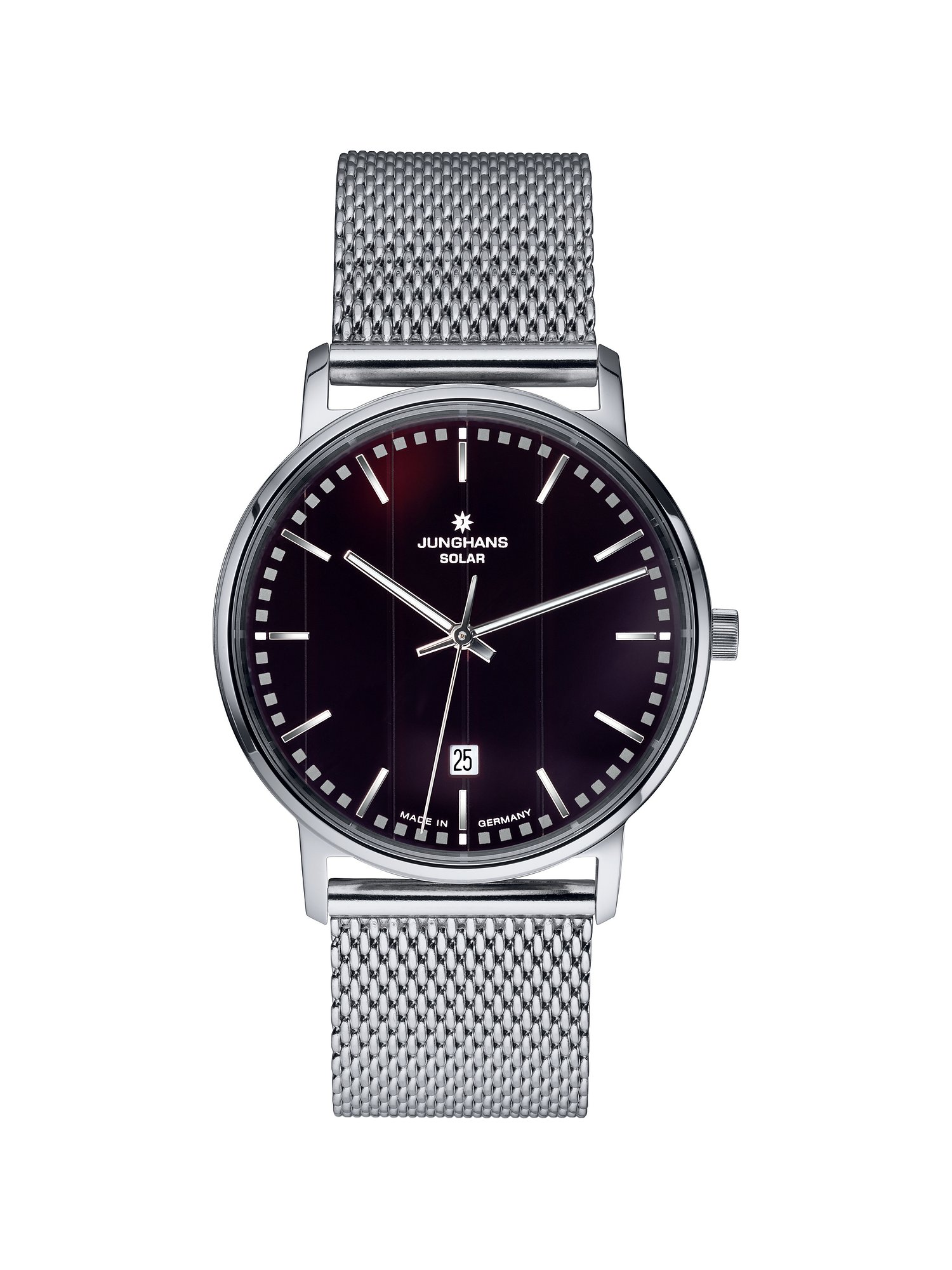 Entdecken Sie Junghans, eine deutsche Marke mit einer langen Tradition, die 1861 in Schramberg gegründet wurde. Sie verbindet historische Uhrmacherkunst mit modernem Design und bietet Ihnen präzise mechanische und Quarzuhrwerke. Suchen Sie nach sportlicher Eleganz? Dann könnte die Milano Solar Ihre neue Lieblingsuhr werden. Diese hochwertige Herrenuhr mit Edelstahl-Gehäuse bringt lässigen Luxus an Ihr Handgelenk. Das zeitlose, stilvolle Design passt ideal zu legeren Freizeit-Outfits und ergänzt mühelos Ihre Business-Dresses oder festlichen Looks. Das silberfarbene Armband aus Edelstahl trägt dazu bei, diese Uhr zu einem stilistischen Allrounder zu machen. Es garantiert nicht nur bequemen Tragekomfort, sondern auch robuste Langlebigkeit. Mit einem Gehäusedurchmesser von 37 mm ist die Funk & Solar Milano Solar perfekt für schmale Handgelenke geeignet. Das schwarze Zifferblatt mit den Markierungen verleiht der Uhr einen besonders chicen und ästhetischen Look. Leuchtzeiger und Leuchtindizes garantieren jederzeit eine gute Ablesbarkeit. Besonders praktisch: Neben der Uhrzeit zeigt ein Blick auf die Uhr auch das Datum an. Das Gesicht der Uhr wird durch die silberne Lünette perfekt abgerundet. Zum Schutz des Zifferblattes wurde der König der Uhrengläser verwendet: Saphirglas. Dieses synthetische Material ist nahezu unzerkratzbar und äußerst robust, zudem ist es quasi immun gegen Stöße und Schläge. Im Inneren tickt ein robustes Junghans-Quarzwerk, das zuverlässige Präzision garantiert. Das Manufakturkaliber ist das Herzstück des Zeitmessers und ein Beweis für die meisterhafte Feintechnik der Uhrmacherei aus dem Hause Junghans. Der Zeitmesser ist wasserdicht bis 5 bar und kann daher ganz unbesorgt auch beim Baden getragen werden. Die Klappschließe sorgt für sicheren Halt und gute Verstellbarkeit. Durch das leicht austauschbare Armband können Sie den Look der Uhr ganz einfach anpassen und immer wieder ein neues modisches Statement setzen.