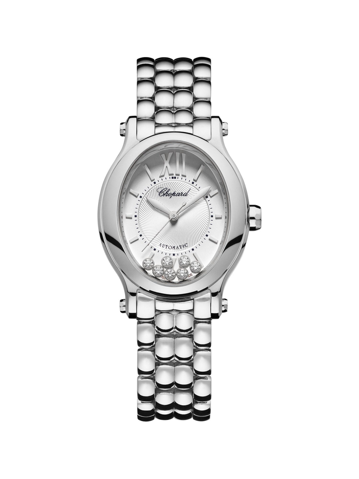 Why we love itEdelstahl und Diamanten – für uns eine absolut aufregende Kombination. Erstmals eingeführt wurde sie 1993 von Chopard mit der Happy Sport Kollektion. Heute sind die Luxusdamenuhren begehrte Sammlerstücke und begeistern durch ein ganz besonderes Detail: die „Happy Diamonds“. So nennt Chopard die Steine, die auf den Zifferblättern der Uhren funkeln. Der Clou: Sie sind nicht fixiert, sondern tanzen frei beweglich über das Zifferblatt. Verspielt und kreativ, sportlich und elegant: Eine Uhr für die selbstbewusste Frau von heute.