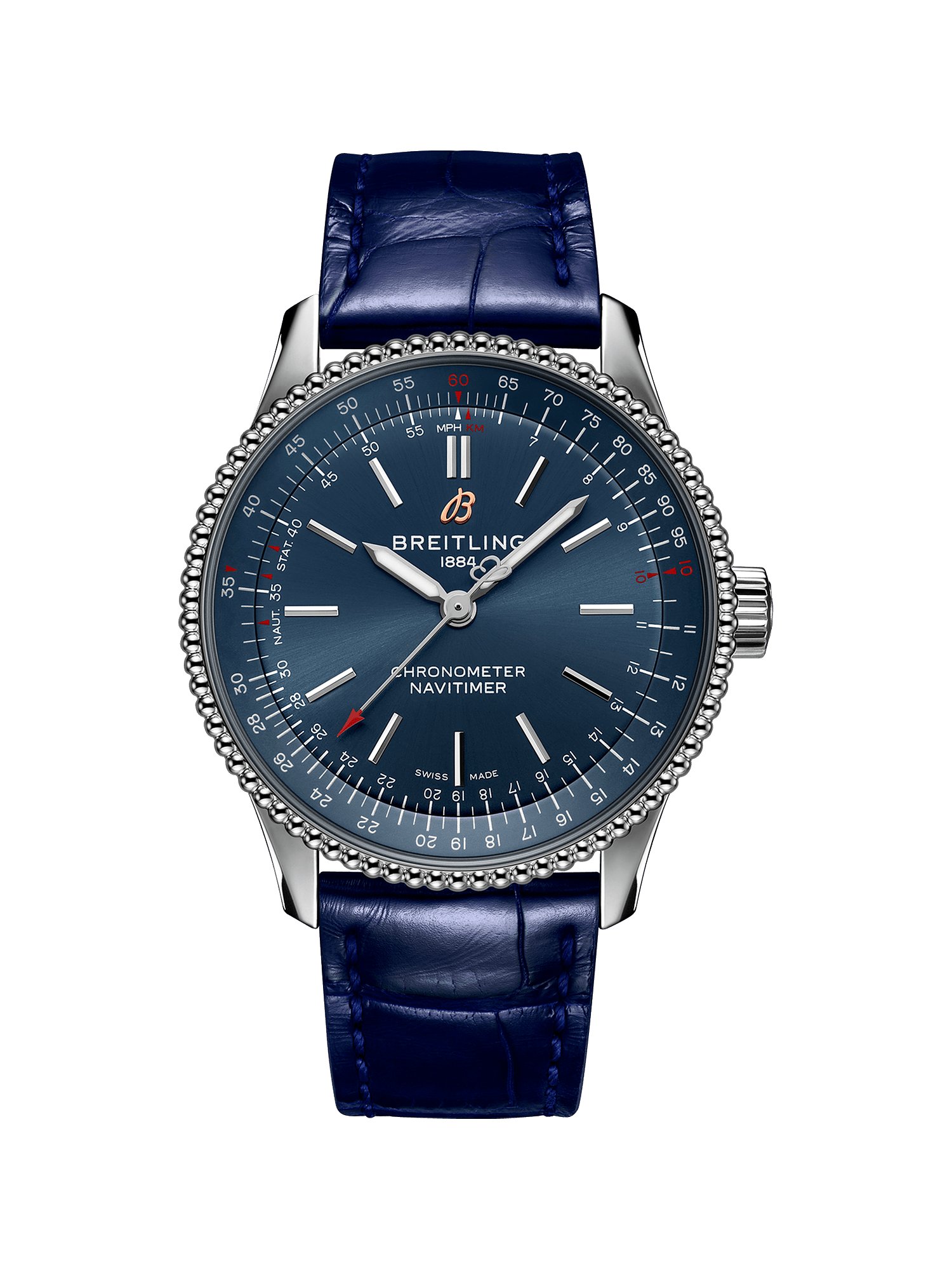 Why we love itSie lieben den sportlichen Luxus von Breitling? Dann empfehlen wir Ihnen die Navitimer. Sie ist eine echte Ikone der Marke und begeistert seit Generationen an zahllosen Handgelenken dieser Welt. Ihr lässiger Variantenreichtum begeistert uns jeden Tag aufs Neue, denn der große Klassiker der Schweizer Kultmanufaktur muss nicht automatisch ein Chronograph sein. Die Navitimer Automatic vereint sportliche DNA mit eleganten Details und avanciert so zum zeitlosen Statement im Alltag.