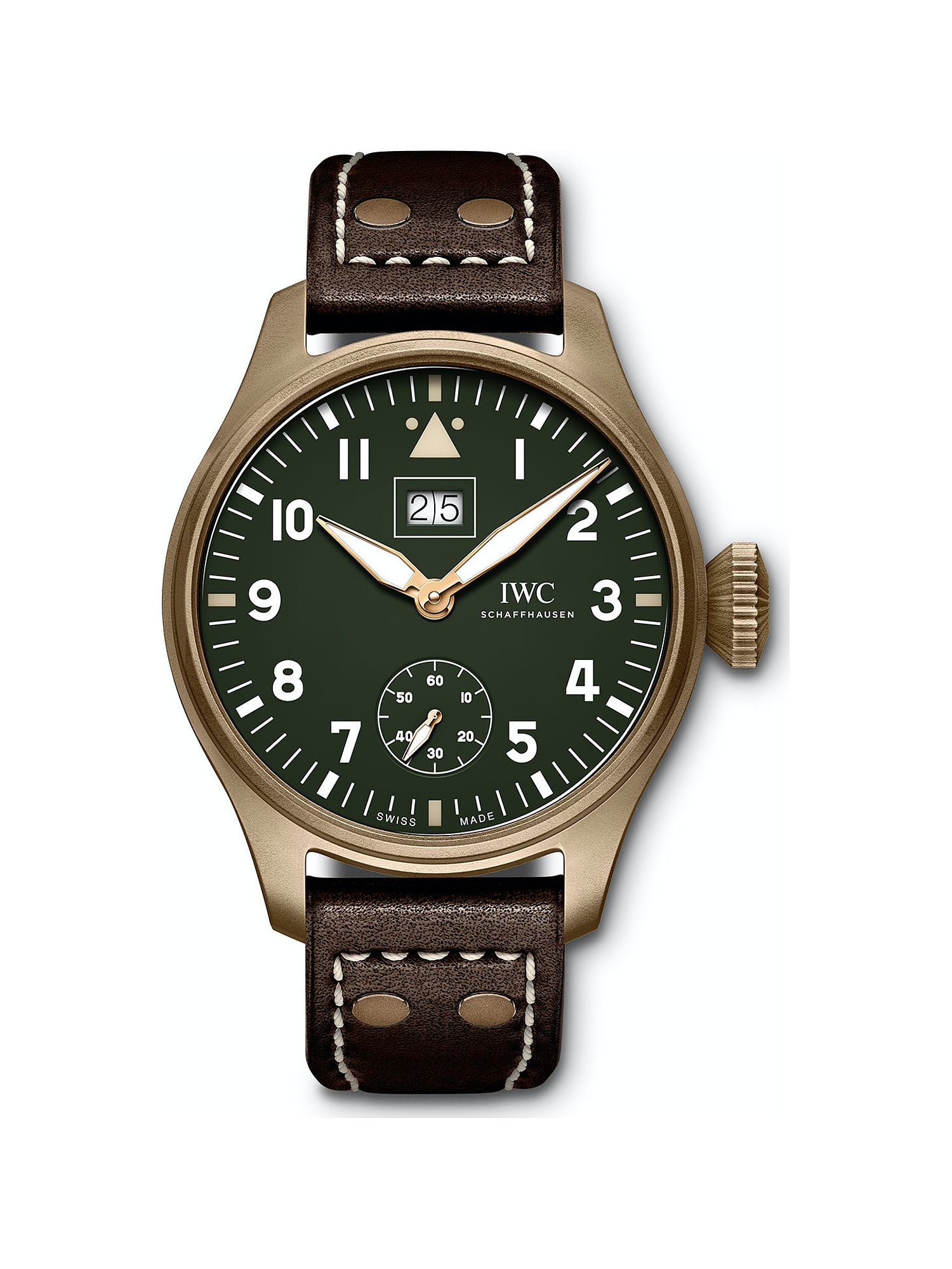 Why we love it2019 umrundeten die Piloten Steve Boultbee Brooks und Matt Jones in einer Spitfire die Welt und schrieben Luftfahrtgeschichte. IWC war Sponsor des Rekordflugs und feierte das mit einer exklusiven Uhr: der Big Pilot's Watch Big Date Spitfire Edition „Mission Accomplished“. Die Fliegeruhr überzeugt in Sachen Design und Funktionalität: Das grüne Ziffernblatt und das Bronzegehäuse, das mit der Zeit eine schöne Patina entwickelt, harmonieren perfekt. Das Manufakturkaliber mit Handaufzug bietet acht Tage Gangreserve. Mehr geht nicht.