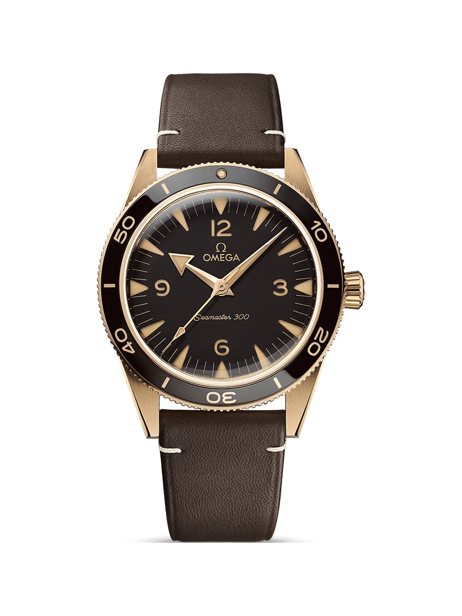 Why we love itDie Schweizer Luxusuhrenmarke Omega verbindet innovative Technologien mit klassischen Designs. Die weltweit agierende Marke aus Biel ist für ihre Qualität und Präzision bekannt. Uhren wie die Speedmaster und die Seamaster gelten seit den 60ern als Ikonen der Uhrmacherkunst und sind Begleiter, die ein Leben lang halten. Für Herren, die in Sachen Stil und Qualität keine Abstriche machen möchten, ist die Omega Seamaster 300 die optimale Wahl. Diese Taucheruhr kombiniert ein robustes Gehäuse aus Bronze mit Keramik mit einem sportlichen Lederband. Mit einem Gehäusedurchmesser von 41 mm passt sie so zu einer Vielzahl von Handgelenken. Das innovative Material Bronze sorgt für einen außergewöhnlichen Look, Die Lünette ist drehbar und in bronze gehalten. Auf dem Ziffernblatt in Braun sorgen Markierungen für gute Ablesbarkeit, die Zeiger heben sich klar davon ab - für einfache Zeiterfassung auf einen Blick. Das verwendete Saphirglas ist durch seine Härte enorm widerstandsfähig gegen Kratzer. In der Uhr tickt ein exzellentes Automatikwerk, das sich bei jeder Bewegung des Handgelenks selbsttätig aufzieht. Ein schönes Feature für die Liebhaber hochwertiger Automatikwerke: Auch der Boden ist aus widerstandsfähigen Saphirglas gefertigt und lässt so Einblicke auf die Arbeit von Rotor und Unruh zu. Die enorme Gangreserve von 60 Stunden macht es problemlos möglich, die Uhr mehrere Tage nicht zu tragen, ohne sie neu stellen zu müssen. Das Band aus Leder in klassischem Braun hält die Uhr sicher durch die Dornschließe am Platz. Als ein gelungenes Gesamtpaket aus Design und Technik wird diese Omega auch in etlichen Jahren noch ihren Platz als geliebter Begleiter am Handgelenk haben.