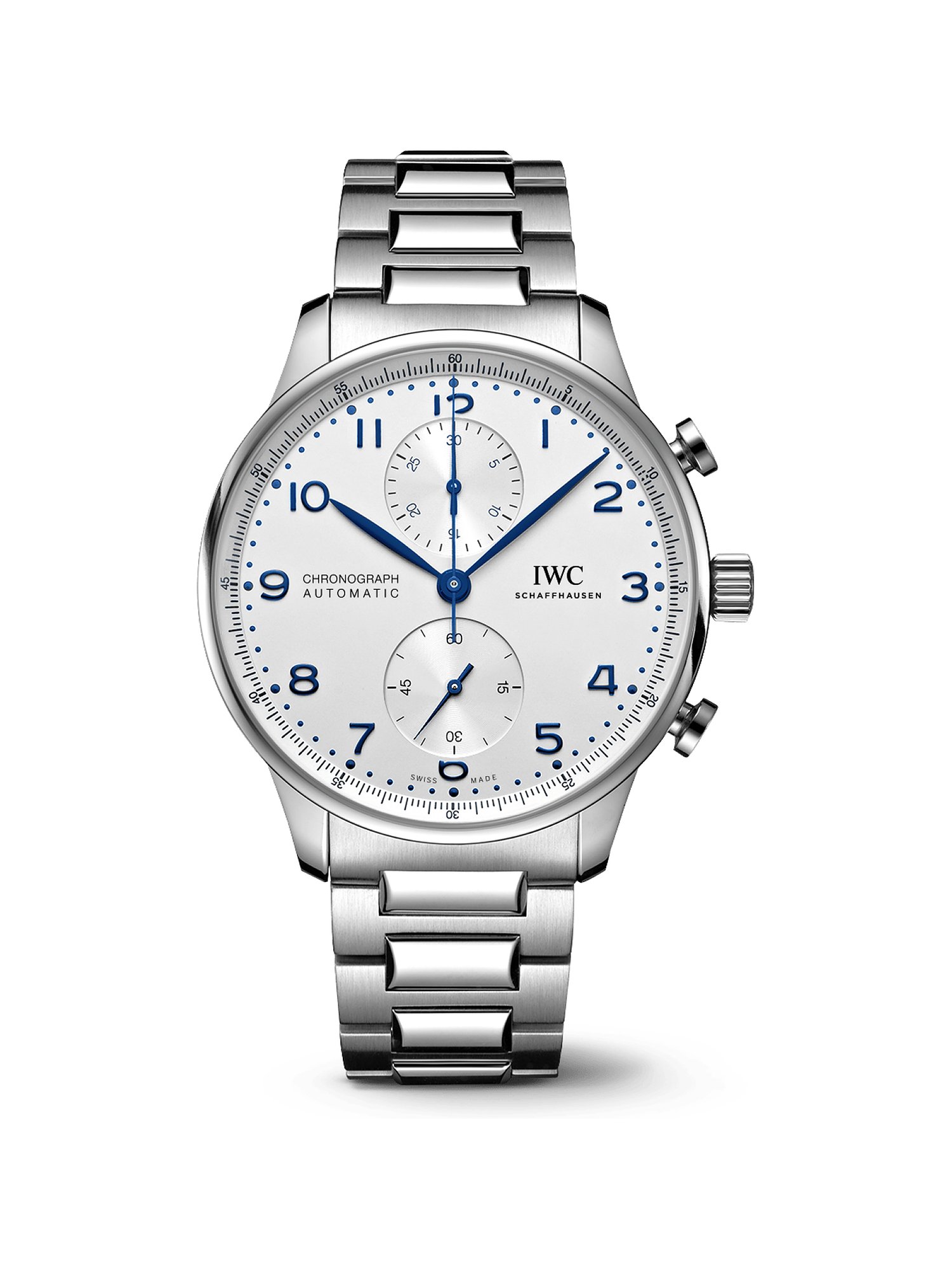 Why we love itIWC Schaffhausen verkörpert die Essenz von Schweizer Uhrmachertradition und Luxus. Schon seit 1868 steht die Marke für unvergleichliche Qualität, innovatives Design und zeitlose Eleganz. Jede Uhr ist ein Kunstwerk, das das Erbe der Marke ehrt und gleichzeitig die Grenzen der Uhrmacherkunst neu definiert. Für Herren, die in Sachen Stil und Qualität keine Abstriche machen möchten, ist die IWC Schaffhausen Portugieser Chronograph die optimale Wahl. Dieser sportive Chronograph kombiniert ein robustes Edelstahlgehäuse mit einem sportlichen Edelstahlband. Diese IWC Schaffhausen hat ein Gehäuse mit einem Durchmesser von 41 mm und einer Gehäusedicke von 13,5 mm - trotz dieser eher auffälligen Maße passt sie dennoch zu vielen Handgelenken. Für einen ausdrucksstarken und modernen Look ist die Oberfläche mit einem teilmattiert Finish versehen, dazu ergänzt sich harmonisch die Lünette in Silber. Ziffern geben auf dem Blatt in Silber die Stunden an, die gebläuten Zeiger sind darauf deutlich zu erkennen. Der Chronograph zeigt die typische Komplikation Stoppfunktion. Das verwendete Saphirglas ist durch seine Härte enorm widerstandsfähig gegen Kratzer und bleibt viele Jahre klar. Die Uhr ist bis zu 3 Bar wasserdicht, also spritzwassergeschützt. Ein exzellentes Automatikwerk bildet das Herzstück der Uhr, mit jeder Bewegung des Arms zieht es sich selbständig auf. Der Boden ist aus robustem Saphirglas gefertigt und lässt so Einblicke in die Arbeit von Rotor und Unruh zu. Mit einer Gangreserve von bis zu 46 Stunden muss die Uhr auch dann nicht neu gestellt werden, wenn sie einige Zeit lang nicht bewegt wurde. Durch die Butterfly-Faltschließe am Stahlband wird sicherer Halt gewährleistet. Als luxuriöser Begleiter bereitet diese IWC Schaffhausen auf viele Jahre hinaus Freude.