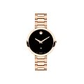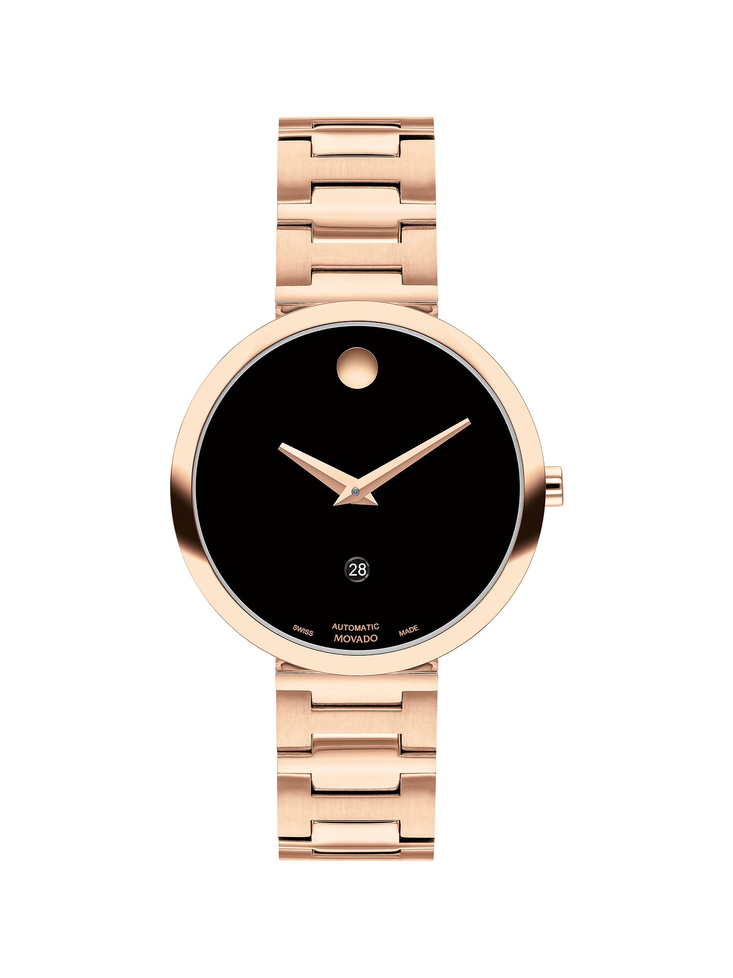 Seit der Gründung im Jahr 1881 verkörpert Movado einen hohen Qualitätsanspruch und verbindet damit Schweizer Uhrmacherkunst mit zeitlosem, modernem Design. Der Industriedesigner und Bauhaus-Anhänger Nathan George Horwitt entwarf 1947 ein schlichtes schwarzes Zifferblatt mit einem großen, goldenen Punkt auf 12 Uhr als einziges Schmuckelement, das den Sonnenstand symbolisiert. Die neuen Movado-Uhrenkollektionen spiegeln den Stolz einer über 130-jährigen Geschichte für exzellentes Design wider. Sollten Sie auf der Suche nach einem echten Allrounder für Alltag, Business und besondere Anlässe sein, ist die Damenuhr Museum Classic genau die richtige Wahl für Sie. Durch ihr bedingungslos stilvolles Design fügt sich die luxuriöse Uhr mit Edelstahl-Gehäuse mühelos in jeden Look ein. Auch das rote Armband aus Edelstahl sorgt für zeitlosen Chic und angenehmen Tragekomfort. Die Museum Classic hat einen Gehäusedurchmesser von 32 mm und ist somit perfekt für schmale Handgelenke geeignet. Das schwarze Zifferblatt wird zum besonderen Blickfang Ihrer Uhr. Besonders praktisch: Neben der Uhrzeit verrät ein Blick auf die Uhr auch das Datum. Um das Zifferblatt zu schützen, wurde der König der Uhrengläser verwendet: Saphirglas. Dieses synthetische Material ist kaum zu zerkratzen und äußerst robust. Saphirglas ist nahezu immun gegen Stöße und Schläge. Das Automatikwerk ist absolut zuverlässig und präzise. Durch Ihre täglichen Bewegungen wird der bewegliche Rotor angetrieben, sodass Sie die Uhr nicht aufziehen müssen. Mit einer Wasserdichte von 3 bar ist die Uhr spritzwassergeschützt und kann beim Händewaschen problemlos am Handgelenk verbleiben. Sicheren Halt und gute Verstellbarkeit garantiert die Kipp-Faltschließe.