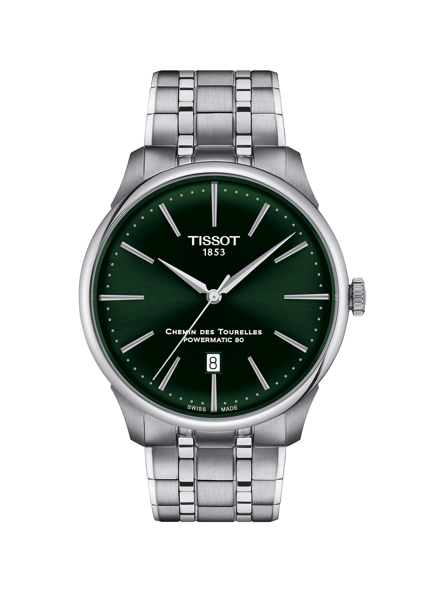 Erleben Sie Schweizer Uhrmacherkunst in Kombination mit einem erstklassigen Preis-Leistungsverhältnis – ein Hoch auf Tissot. In der Manufaktur aus dem malerischen Le Locle wird Handwerkskunst und Qualität mit Hingabe für Leistung und Präzision vereint, was die tägliche Motivation seit 1853 antreibt. Wenn Sie auf der Suche nach einem wahren Allrounder für Alltag, Business und besondere Anlässe sind, ist die Herrenuhr T-Classic Chemin Des Tourelles die perfekte Wahl für Sie. Ihr formvollendetes Design mit Edelstahl-Gehäuse passt sich mühelos jedem Look an. Das graue Edelstahlarmband verleiht Ihnen zeitlosen Chic und bequemen Tragekomfort. Mit einem Gehäusedurchmesser von 42 mm macht die T-Classic Chemin Des Tourelles an Ihrem Handgelenk stets eine gute Figur. Die eleganten Markierungen auf dem grünen Zifferblatt fügen sich harmonisch in das Gesamtdesign ein. Diese Uhr ist nicht nur ein elegantes Accessoire, sondern auch äußerst praktisch: Sie zeigt Ihnen nicht nur die Uhrzeit, sondern auch das Datum an. Ein strapazierfähiges Saphirglas schützt das Zifferblatt zuverlässig. Dieses hochwertige Material ist nahezu kratzfest und unempfindlich gegen Stöße. Im Inneren arbeitet ein Swiss Made-Automatikwerk, das zuverlässig und präzise seine Aufgabe erfüllt. Der bewegliche Rotor wird durch Ihre täglichen Bewegungen beim Tragen angetrieben, sodass kein manuelles Aufziehen nötig ist. Sollte die Uhr einmal längere Zeit nicht getragen werden, sorgt die beeindruckende Gangreserve von 80 Stunden dafür, dass Sie weiterhin auf präzise Zuverlässigkeit zählen können. Ein Sichtfenster im Gehäuseboden gewährt Ihnen spannende Einblicke in die faszinierende Arbeit des Uhrwerks. Mit einer Wasserdichte von 5 bar können Sie die Uhr sogar bedenkenlos in der Badewanne tragen. Die Butterfly-Faltschließe sorgt für sicheren Halt und ermöglicht eine exzellente Verstellbarkeit.