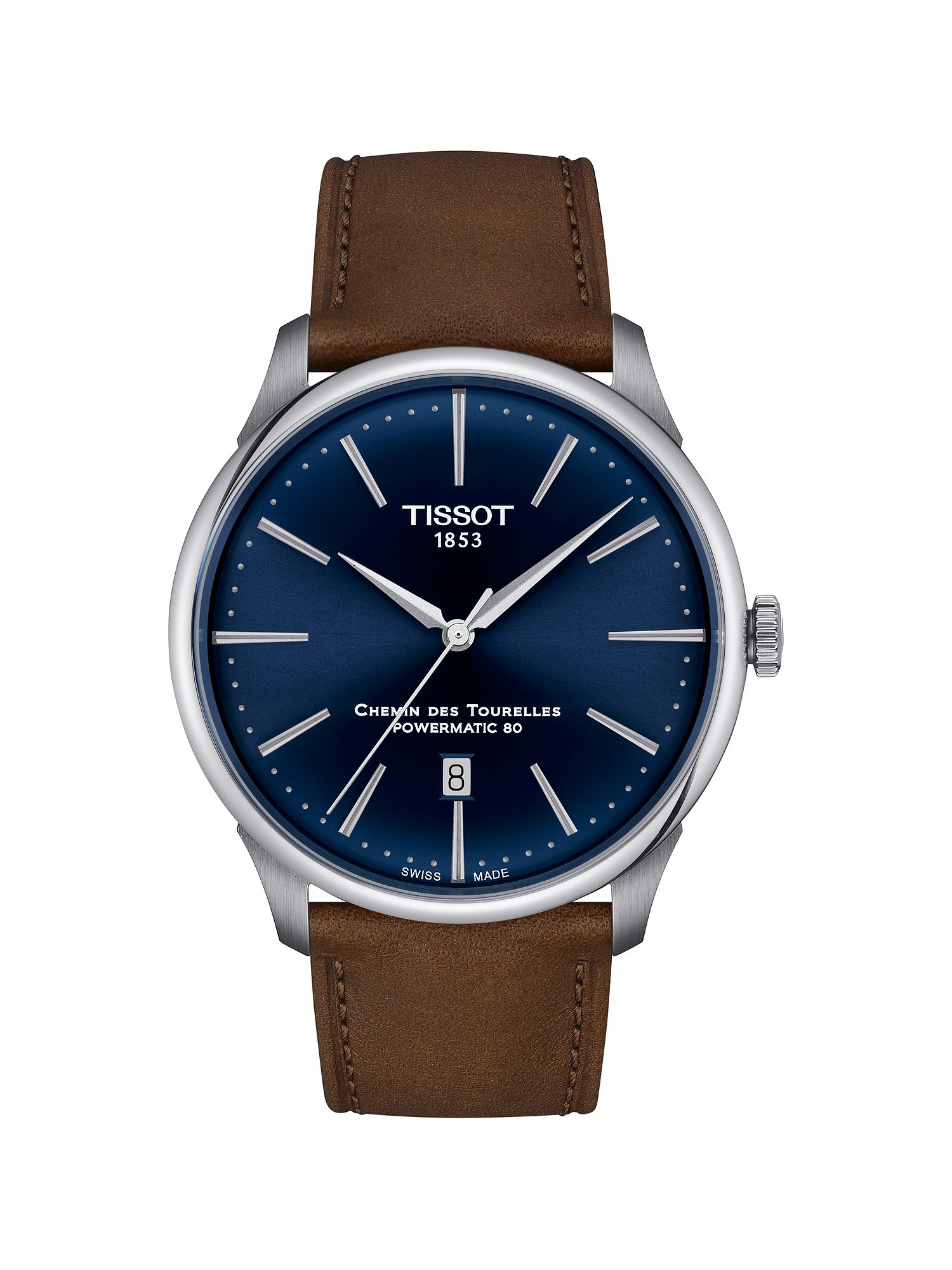 Entdecken Sie die Schweizer Uhrmacherkunst, die sich mit einem erstklassigen Preis-Leistungsverhältnis vereint – ein Hoch auf Tissot! In der Manufaktur aus dem malerischen Le Locle wird Handwerkskunst und Qualität mit Hingabe für Leistung und Präzision gelebt. Seit 1853 entstehen hier durch innovative Technologien erstklassige Uhren in vollkommenen Designs. Ein wahrer Eyecatcher ist die T-Classic Chemin Des Tourelles. Diese luxuriöse Herrenuhr strahlt mit ihrem eleganten Design in bester Qualität eine unwiderstehliche Anziehungskraft aus und fügt sich harmonisch in jedes Outfit ein. Das braune Lederarmband schmiegt sich angenehm um Ihr Handgelenk und perfektioniert den zeitlosen Look der Uhr. Mit einem Gehäusedurchmesser von 42 mm macht die T-Classic Chemin Des Tourelles an jedem Handgelenk eine exzellente Figur. Das blaue Zifferblatt mit Markierungen fügt sich gekonnt in das harmonische Gesamtbild ein. Diese Uhr ist nicht nur elegant, sondern auch praktisch, denn sie verrät Ihnen neben der Uhrzeit auch das Datum. Das Zifferblatt wird durch robustes, kratzfestes sowie stoßunempfindliches Saphirglas geschützt. Für zuverlässige Präzision sorgt das Swiss Made-Werk im Inneren, das durch die natürlichen Bewegungen Ihres Handgelenks aufgezogen wird. Sollte die Uhr einmal längere Zeit nicht getragen werden, hat sie dank ihrer beeindruckenden Gangreserve von 80 Stunden stets genügend Power für präzise Zuverlässigkeit. Der Zeitmesser besitzt ein Sichtfenster im Gehäuseboden, durch das Sie spannende Einblicke in die Arbeit des Uhrwerks erhalten. Mit einer Wasserdichte von 5 bar können Sie die Uhr problemlos auch in der Badewanne tragen. Sicheren Halt und gute Verstellbarkeit garantiert die Butterfly-Faltschließe.