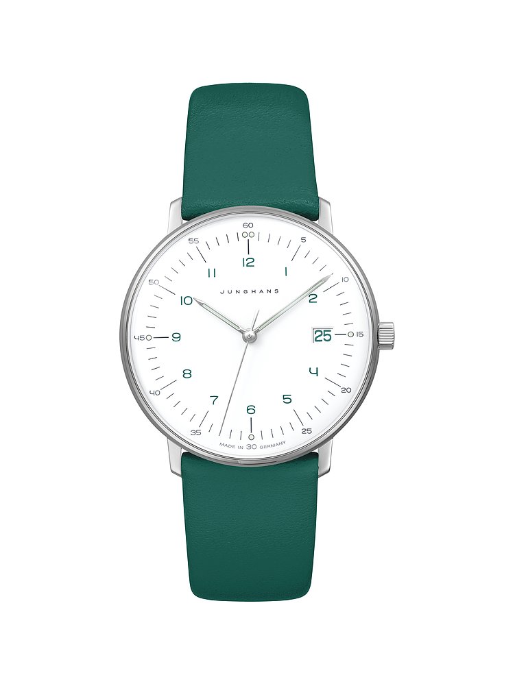 Die max bill aus Leder ist ein echter Hingucker an Ihrem Handgelenk. Diese exklusive Damenuhr verleiht jedem Ihrer Looks im Nu einen Hauch von Eleganz. Das grüne Armband aus Leder bietet nicht nur hohen Tragekomfort, sondern setzt auch ein stilvolles Statement.