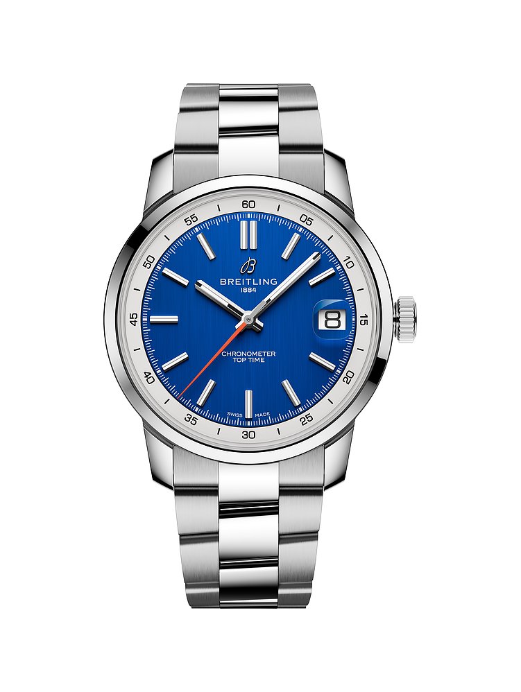 Der Breitling Top Time ist eine exquisite Uhr für anspruchsvolle Uhrenfans, die mit ihrem Edelstahlgehäuse und dem Armband aus Edelstahl einen modern-sportiven Stil ausstrahlt. Bei einem Gehäusedurchmesser von 38 mm und einer Gehäusehöhe von 12,5 mm ist diese Uhr zwar auffälliger und massiver, aber dennoch passt sie an eine Vielzahl von Handgelenken.