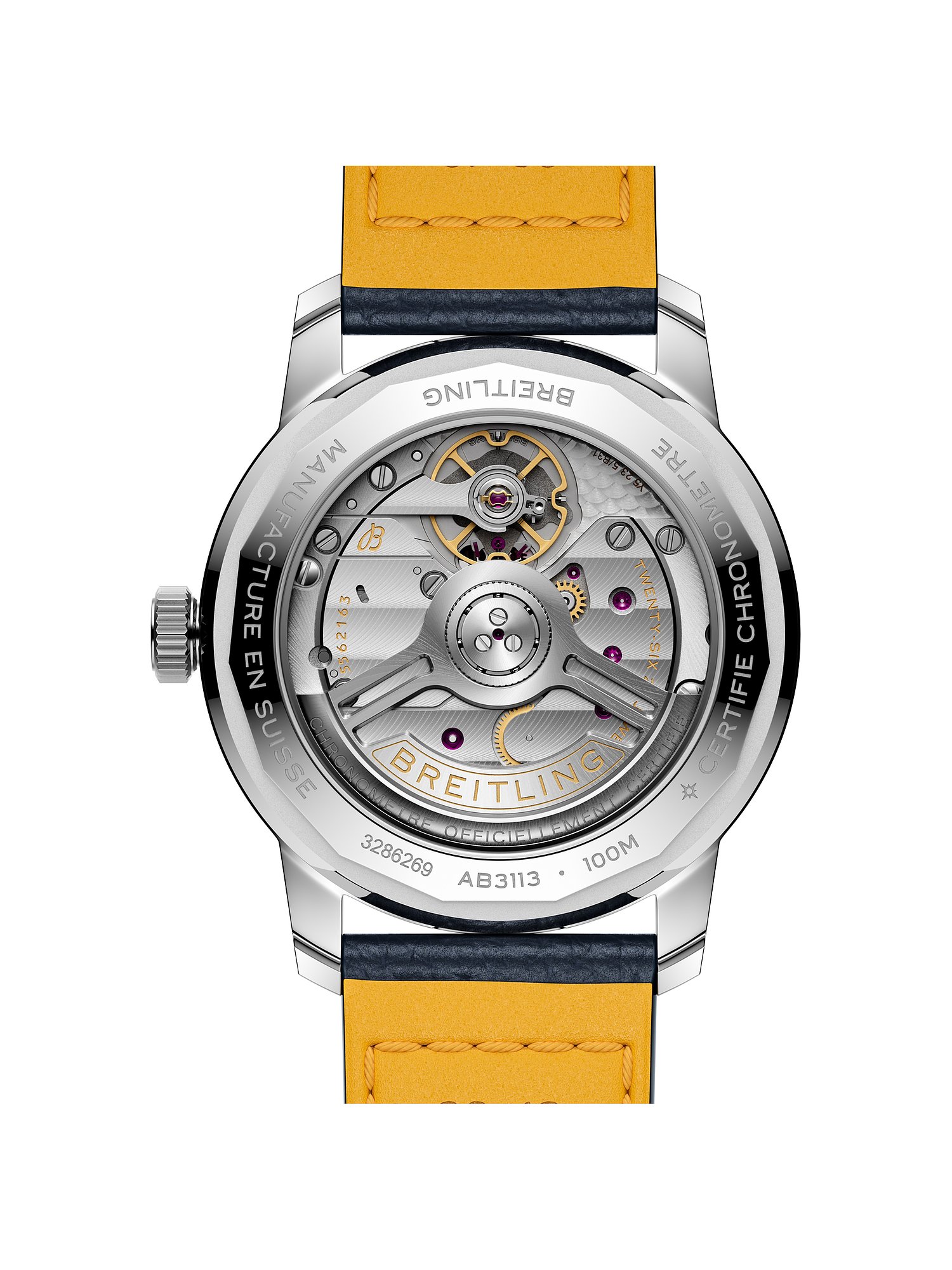 Das integrierte Automatikwerk wird durch jede Bewegung Ihres Handgelenks aufgezogen. Eine COSC-Zertifizierung als Chronometer belegt die exzellente Ganggenauigkeit. Durch den Saphirglasboden ist es Ihnen möglich, die Bewegungen von Rotor und Unruh zu verfolgen. Ein attraktives Merkmal für Fans erstklassiger Automatikwerke: Der Gehäuseboden aus robustem Saphirglas ermöglicht faszinierende Einblicke in die Mechanik von Rotor und Unruh. Ein farblicher Hingucker ist das Band aus Leder in Adult mit Faltschließe, durch das die Uhr sicher und bequem am Arm gehalten wird. Zusammenfassend lässt sich sagen, dass dieser Breitling keine Wünsche offenlässt und Ihnen über Jahre hinweg Freude bereiten wird.